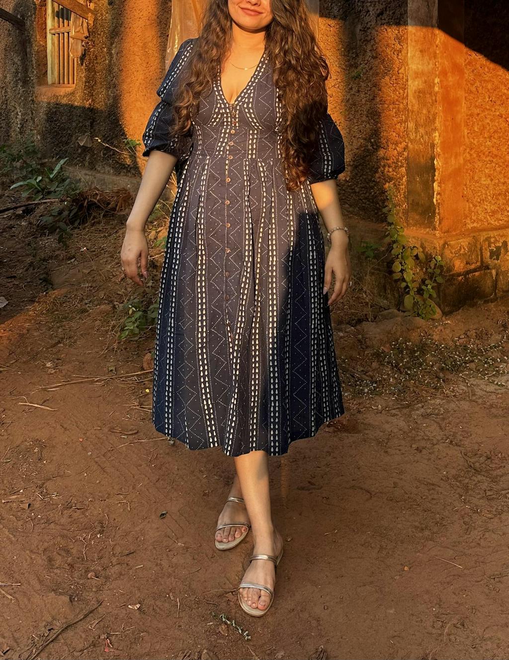 Grey - Wildflower - Blockprinted - Cotton - Dress
