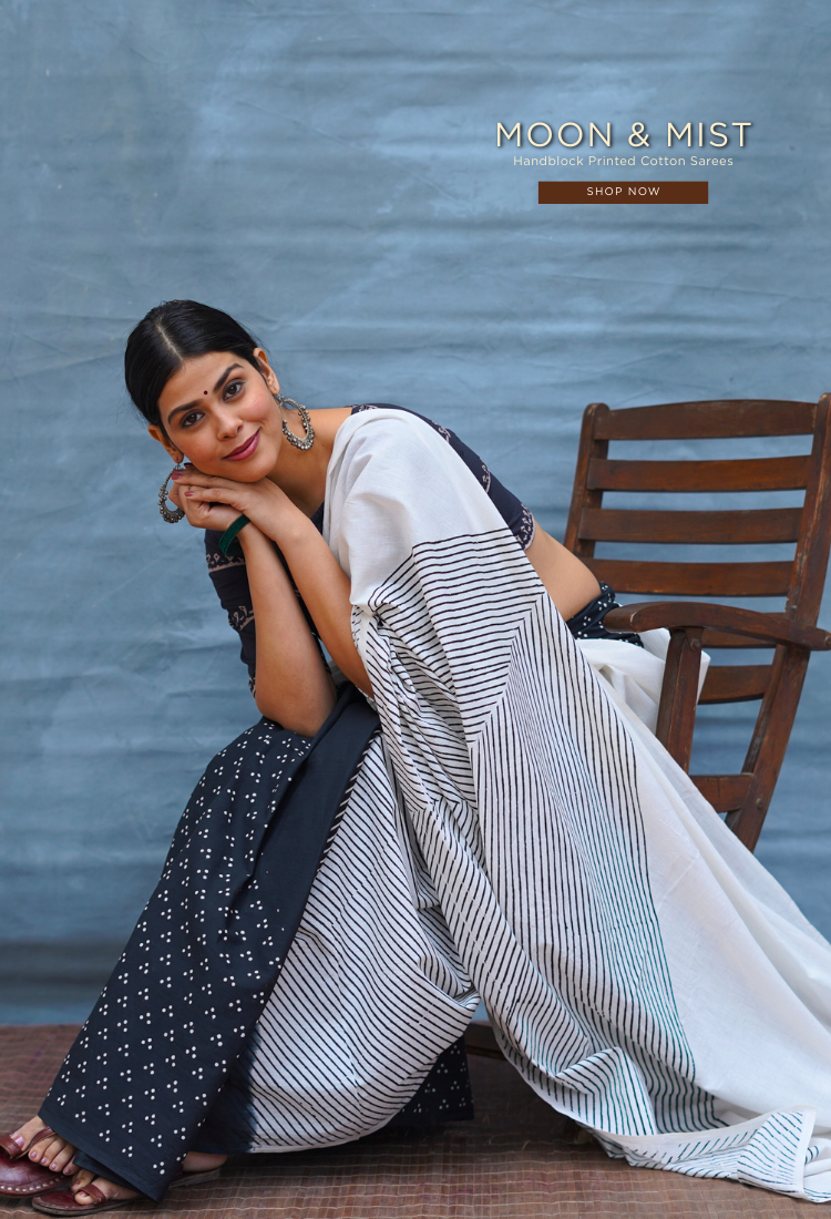 Sarees are the chosen attire by a majority of Indian women, as they are the embodiment of timeless elegance. Sarees are not just a traditional symbol, but also a modern style statement. At Chidiyaa, we use a wide range of colours, block designs and patterns to bring out exclusive sarees that perfectly reflect the rich culture of different regions of India. We have created the ideal blend of authentic old-world crafts with new-world silhouettes to provide you with unique and exquisite hand-block printed sarees.