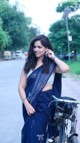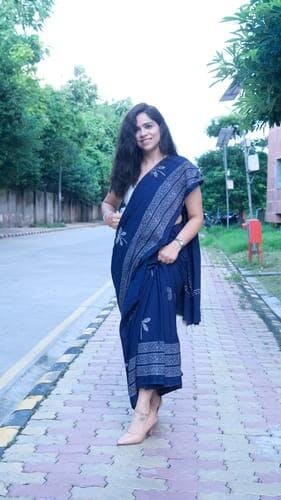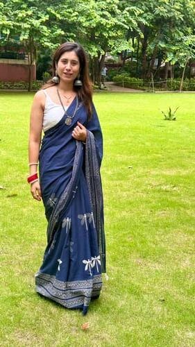 The intricate design and soothing colors of the Dragonfly Meadow Blue Block printed Cotton Saree make it perfect for any occasion, from a saree for wedding to a saree for farewell. You’ll adore how the natural patterns evoke a sense of tranquility and charm. Ideal for saree draping and experimenting with different saree poses, it is also perfect for cotton saree office wear or cotton saree daily wear. Pair it with your favorite saree blouse or try a modern saree blouse designs to enhance your look. You’ll love the light, airy texture and the effortless elegance this saree brings to your wardrobe.