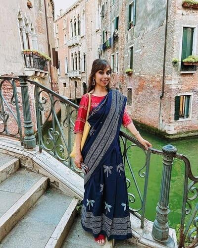 This saree will win your heart with its intricate hand-block printed dragonfly design, offering a blend of elegance and nature. The soft cotton fabric provides all-day comfort, making it perfect for both work and leisure. Whether draped for a formal event or worn for daily use, this saree ensures you look effortlessly stylish. The versatility of the design allows you to pair it with a variety of saree blouse designs to elevate your look. You’ll adore its timeless appeal and how it seamlessly complements any occasion.
