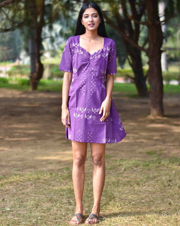 Purple Handprinted Pure Cotton Dress-Slow