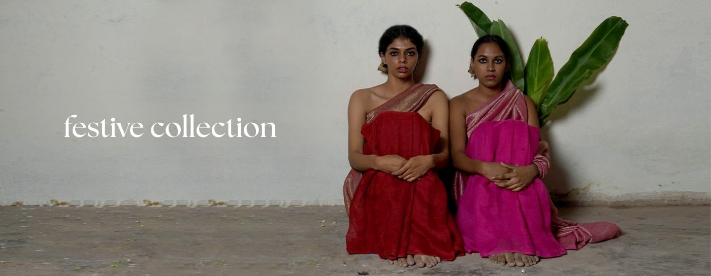 Embrace the festive spirit with our exquisite collection of Handwoven Linen and Modal Silk Sarees. Celebrate tradition while making a style statement this season!