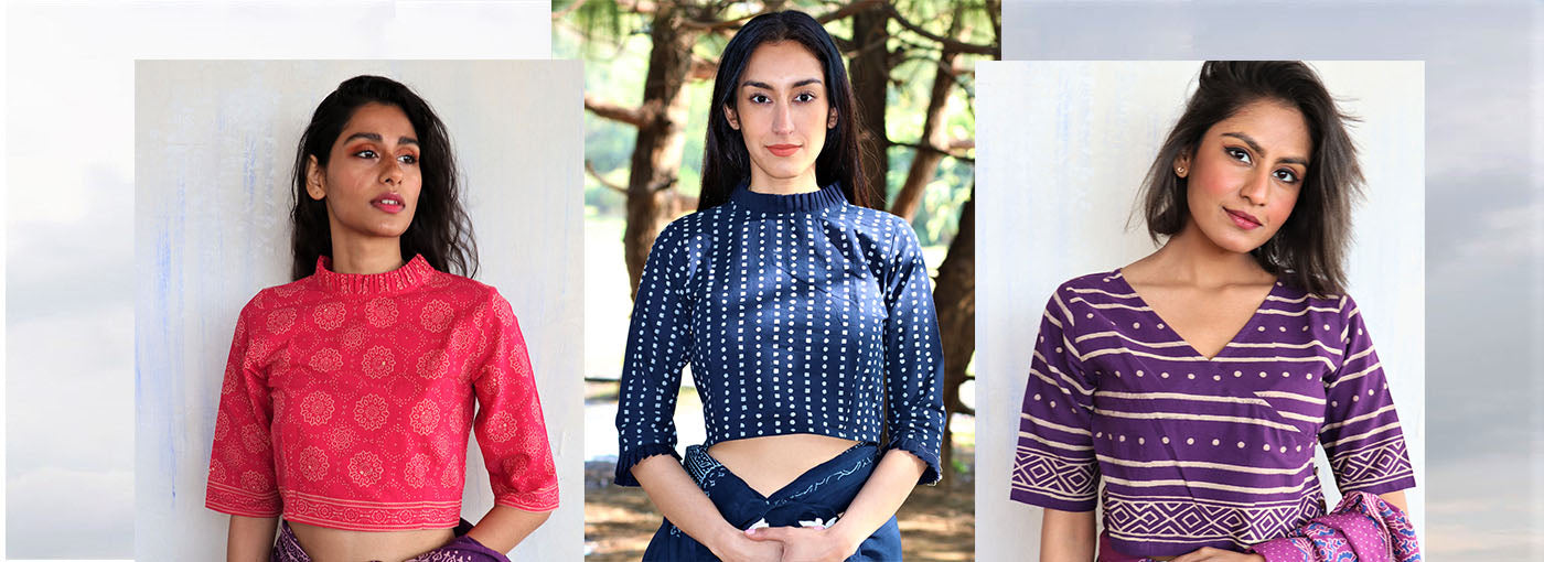 Indulge in the artistry of our handcrafted blouses, featuring a stunning variety of fabrics and necklines. From luxurious Mashru silk blouses to breezy cotton delights, each piece exudes elegance and style