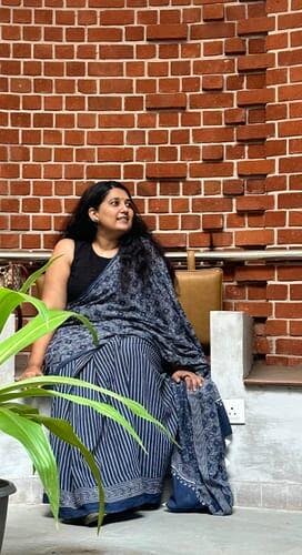 The Indigo Glory Blue Handblock printed Cotton Saree is a splendid masterpiece in the world of cotton sarees. This unique cotton saree showcases intricate hand block prints that seem to weave stories of tradition and craftsmanship with the deep, rich indigo hues. Draping yourself in this saree is akin to wrapping yourself in a cloak of comfort, thanks to the soft and breathable cotton mul mul fabric. Whether you're dressing for a special occasion or a casual gathering, the Indigo Glory Handblock printed Cotton Saree effortlessly intertwines the threads of classic cotton sarees with a touch of modern elegance, ensuring you exude both charm and ease with every graceful drape.