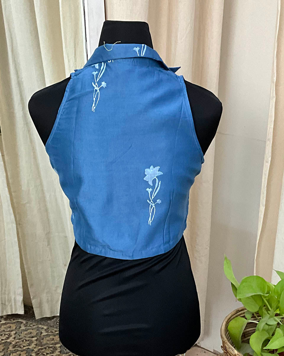 Blue Handblock Printed Chanderi Silk Blouse - Love Despite