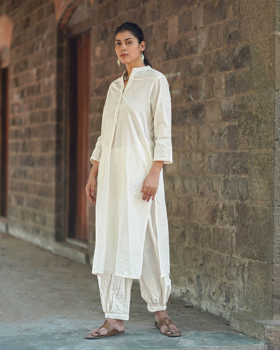 Chapel Veil Ivory Block Printed Kurti - SFD