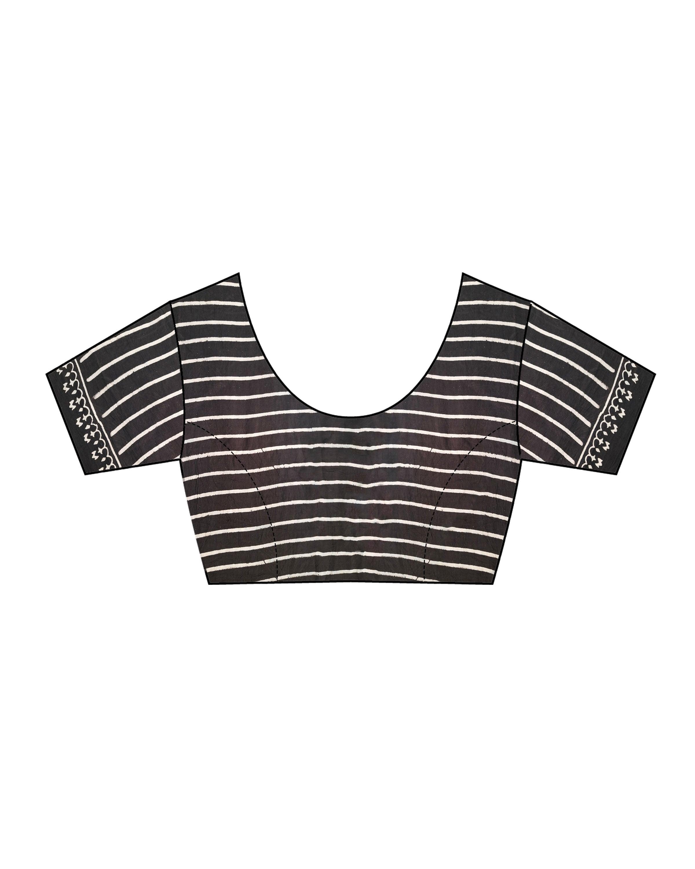 Drape yourself in the timeless elegance of the Isla Black Block printed Cotton Saree – a sartorial masterpiece that seamlessly blends tradition and contemporary allure. Crafted from premium cotton, this saree promises not just a luxurious drape but also a lightweight, breathable comfort that resonates with every step.
