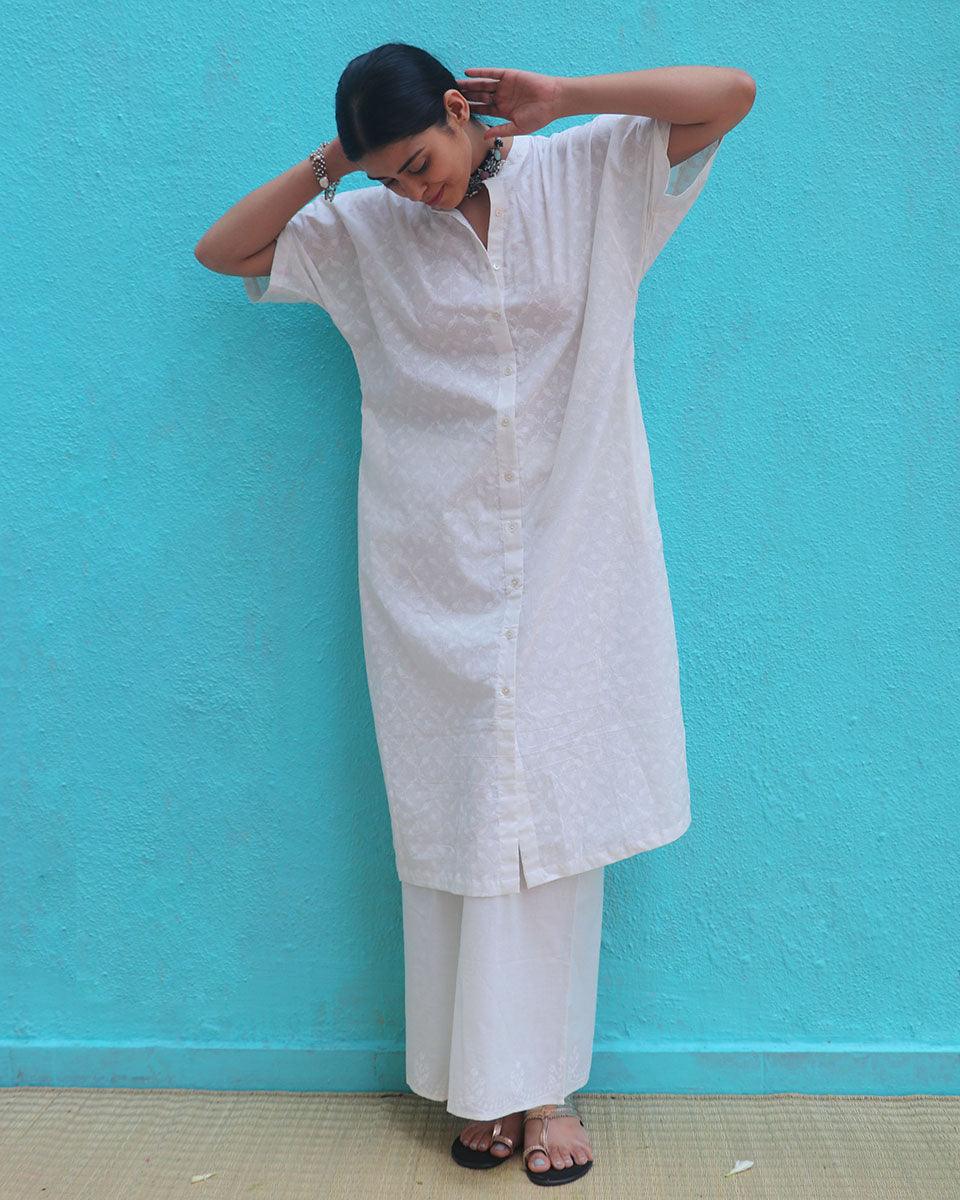 Magadhi Cotton Kurta Set - Safed