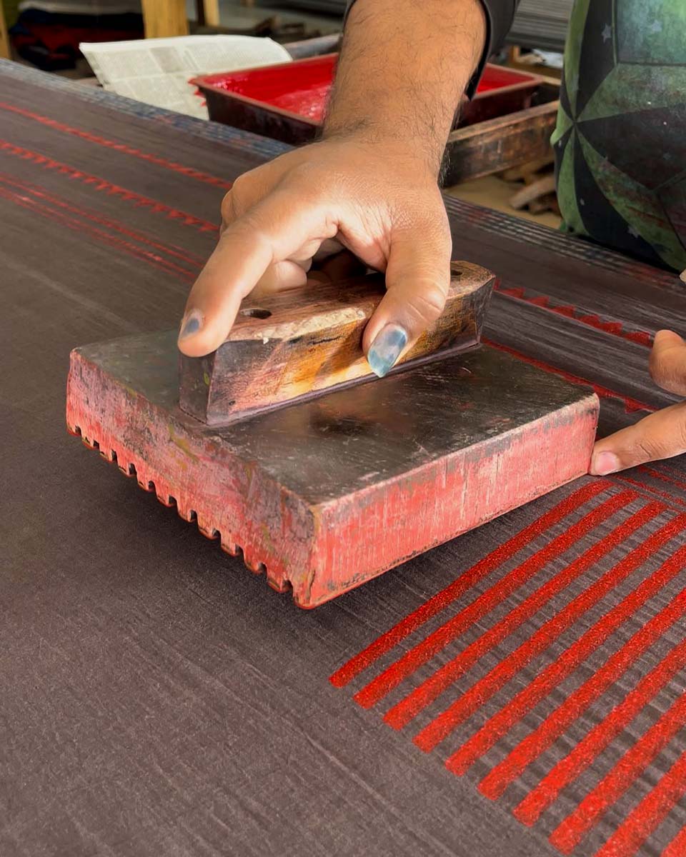 - Block-printed stripes crafted by skilled artisans