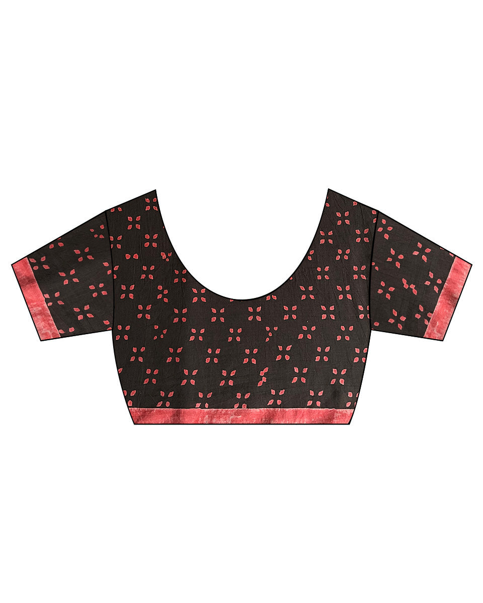 What makes this saree for women even more striking is its solid red border, which creates a bold contrast against the brown base. Whether you drape it for a casual workday, a day out in the sun, or even a cozy get-together, this saree adapts to your mood and setting with ease.