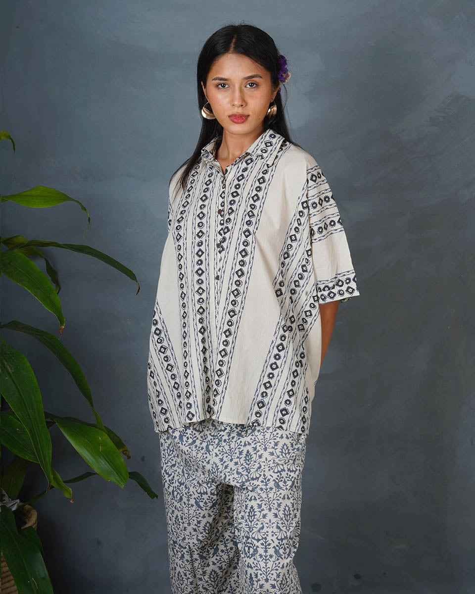 Pearl Horizon Ivory Block Printed Shirt - BMS