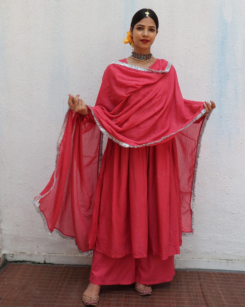 Preet Rose Mulmul Cotton Kurta Set with Dupatta Set of 3 - Jugnoo