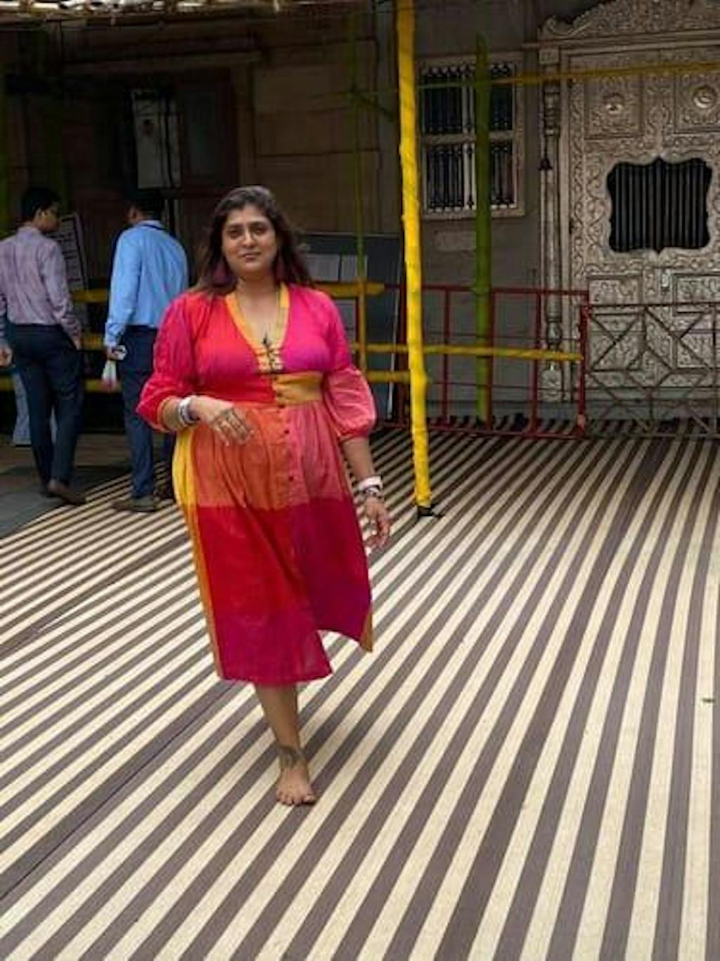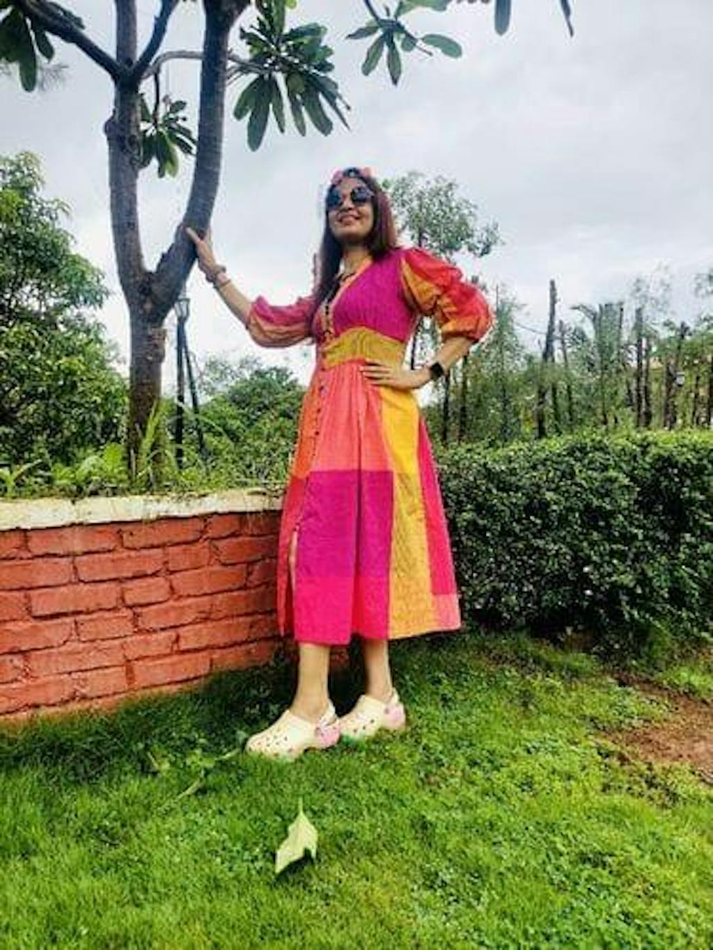 A colorful handwoven handdyed cotton dress with a front button-up design, puffed up three-fourth sleeves, and a V-neckline is a chic and sophisticated option that is perfect for both formal and casual occasions. The front button-up design adds a touch of classic elegance to the dress, while the colorful and vibrant hues make it fun and playful.