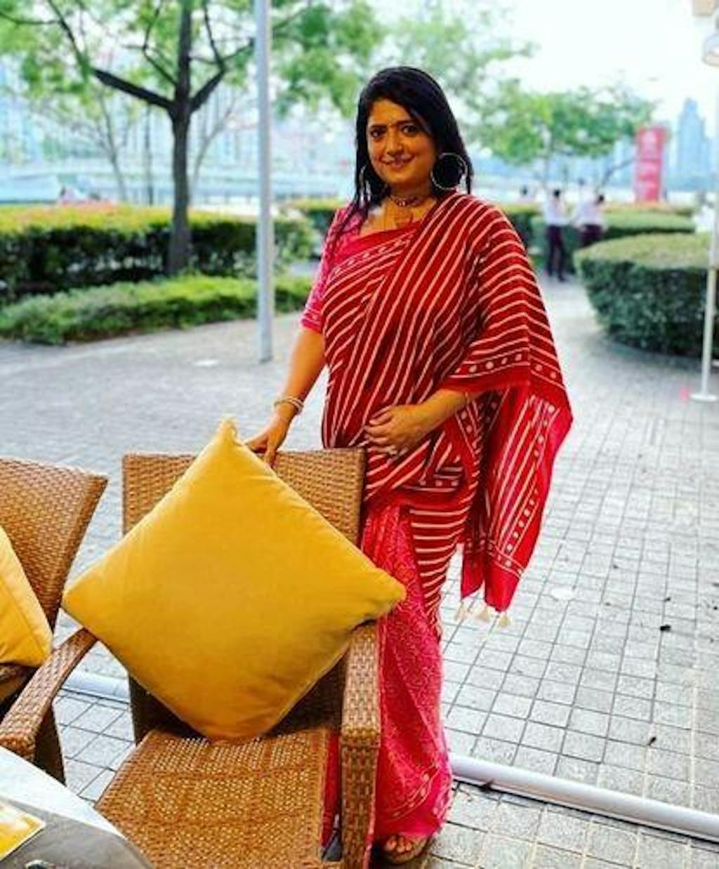 Note: The saree does not come with a blouse shown in the picture, blouses are available for purchase separately. All Sarees come with blouse fabric in the same color as saree and different print