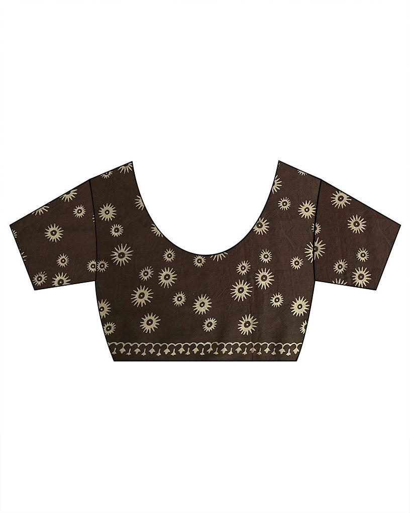 Each print is the result of countless hours of precision and patience. Artisans use hand-carved wooden blocks and natural dyes to create symmetrical patterns that tell stories of generations past. Whether you’re dressing up for a cultural event, an intimate celebration, or just want to elevate your everyday look, this saree offers the perfect blend of comfort and sophistication.