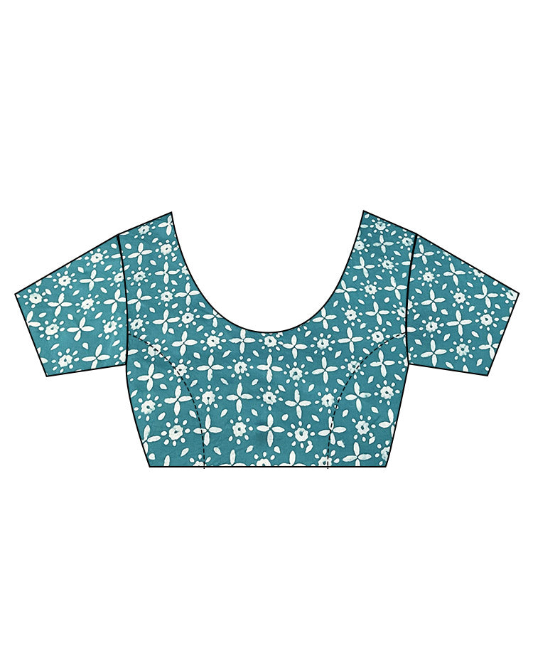 Dwell your style in the serene charm of sea blue block imprinted saree on the luxurious base of Chaderi fabric. Followed by opulent texture and tassel work highlighting on the pallu. Pair it along with our mashru silk blouse to enhance your cultural galore.