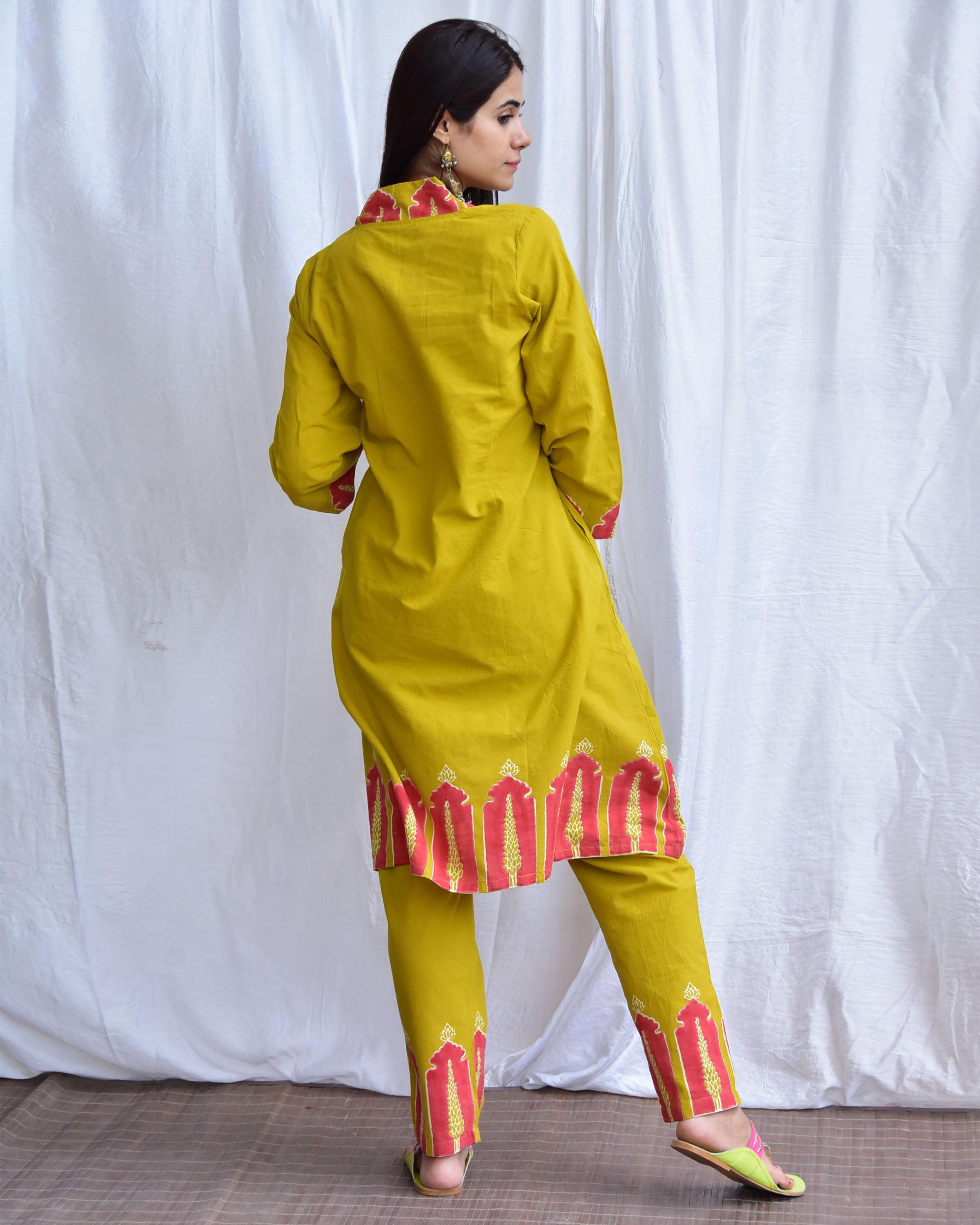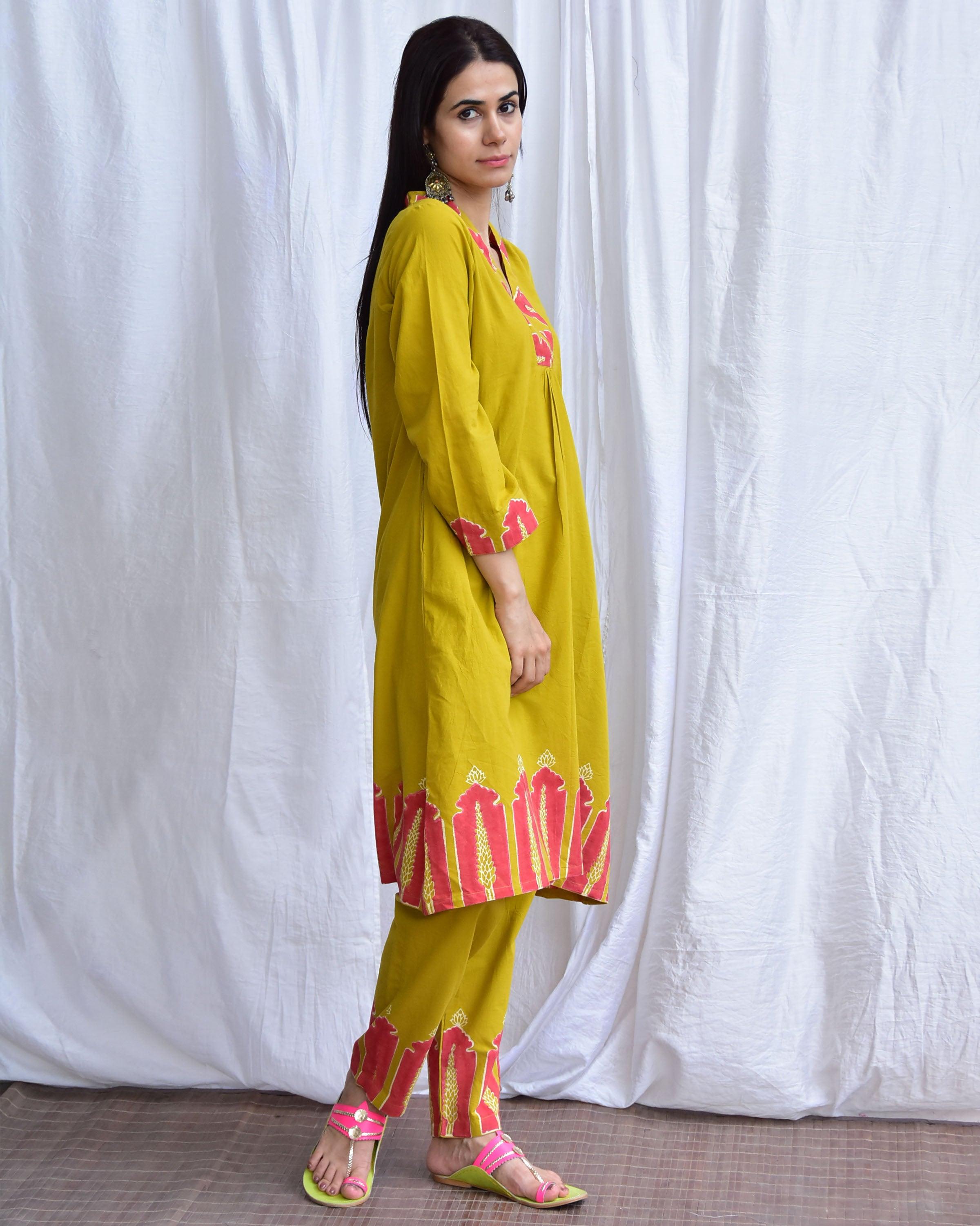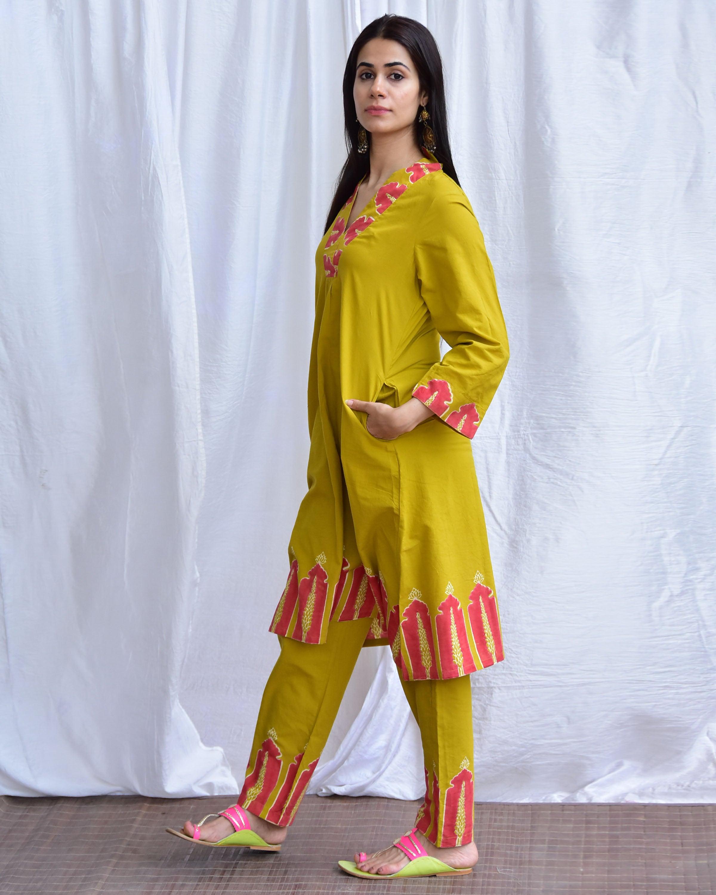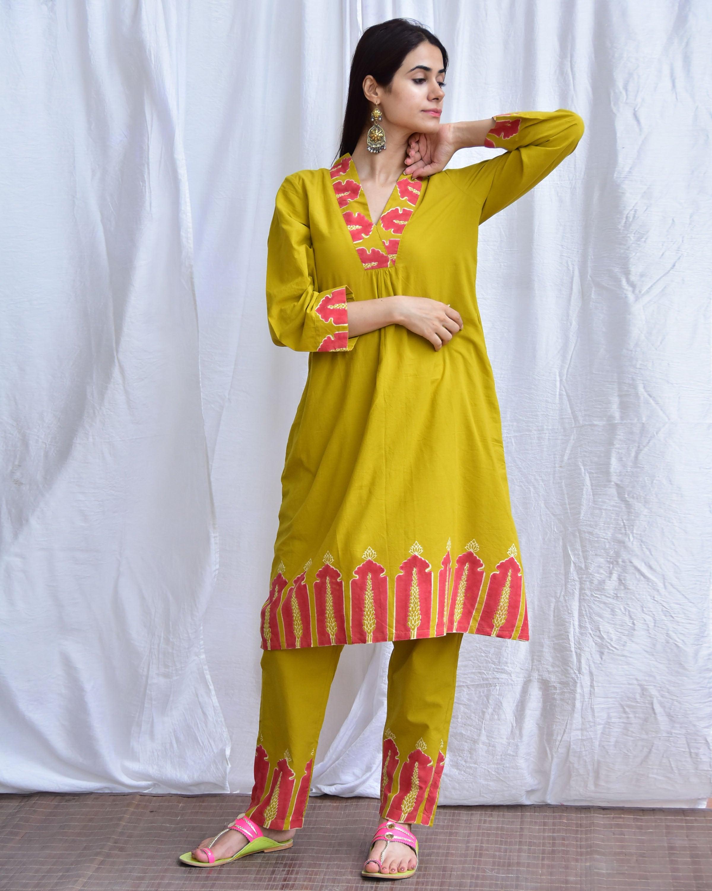 Grace your everyday wardrobe with the effortless charm of the Veena Block Printed Cotton Kurta Set. Crafted from soft, breathable cotton, this elegant kurti set for women is designed for comfort without compromising on style. The kurta features delicate vertical block prints in soothing tones, enhanced by a straight silhouette, three-quarter sleeves, and a flattering neckline. Paired with matching pants, this kurti pant set makes a versatile outfit for office days, casual brunches, or relaxed evenings at home.