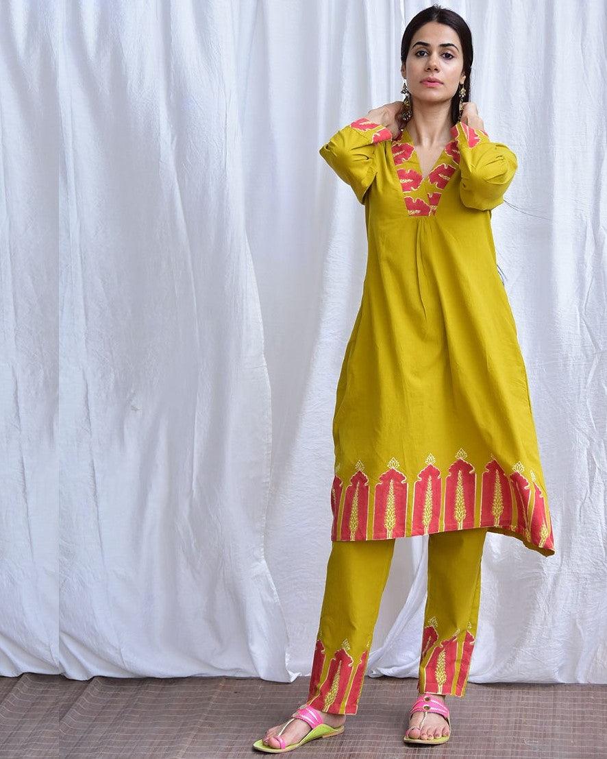 The Veena kurta is cut for ease and movement, while the cotton fabric keeps you cool through every season. It’s a perfect blend of subtle print and timeless design, allowing you to dress it up with jewelry or keep it minimal for everyday elegance. Whether worn as a coordinated kurta set or styled separately, this piece is a wardrobe essential.
